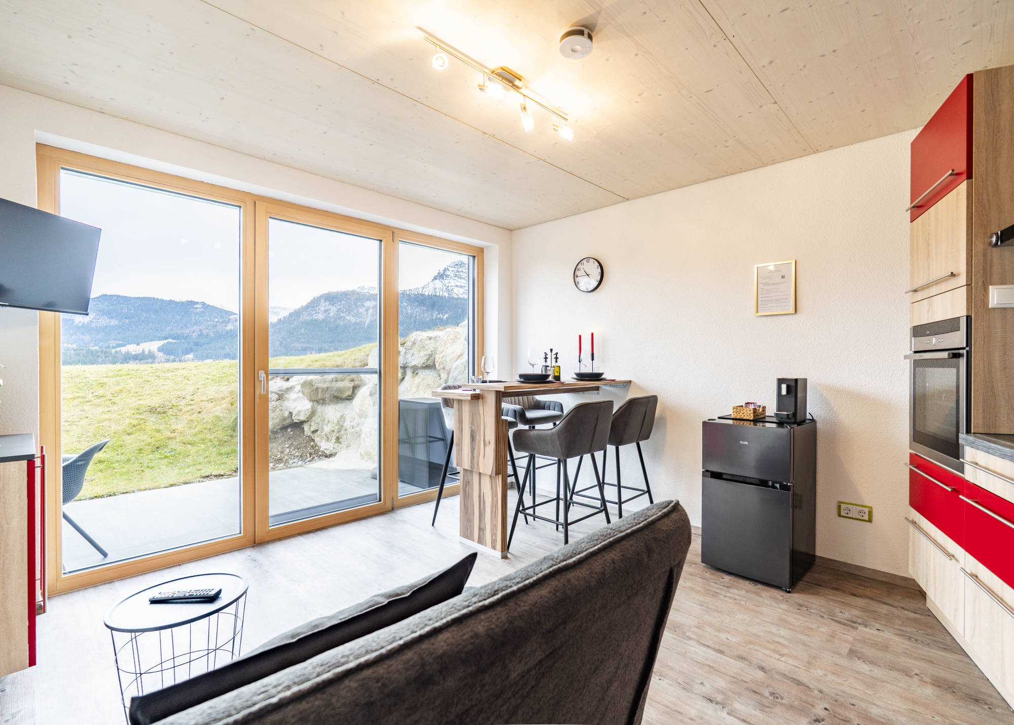 A true highlight is the terrace with access to the garden. From here, you can enjoy views of Ehrenberg Castle and the Hahnenkamm mountain. Imagine enjoying coffee in the sun in the morning and relaxing in the evening with a mountain view. This is exactly what this place is for.